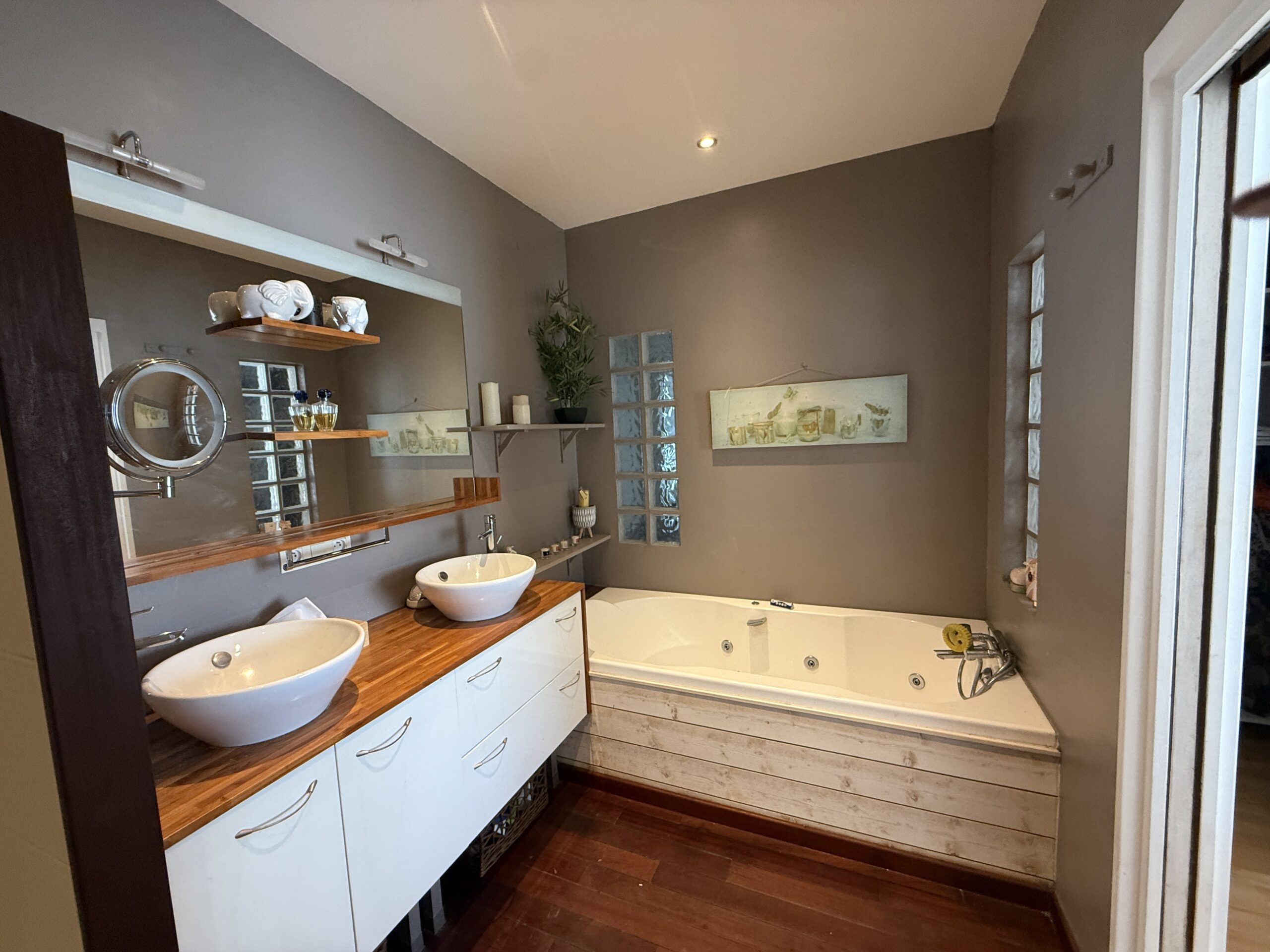 À l’extérieur, vous profiterez d’une piscine chauffée au sel de 4 x 6 m, avec son pool house et équipée d’une bâche solaire.