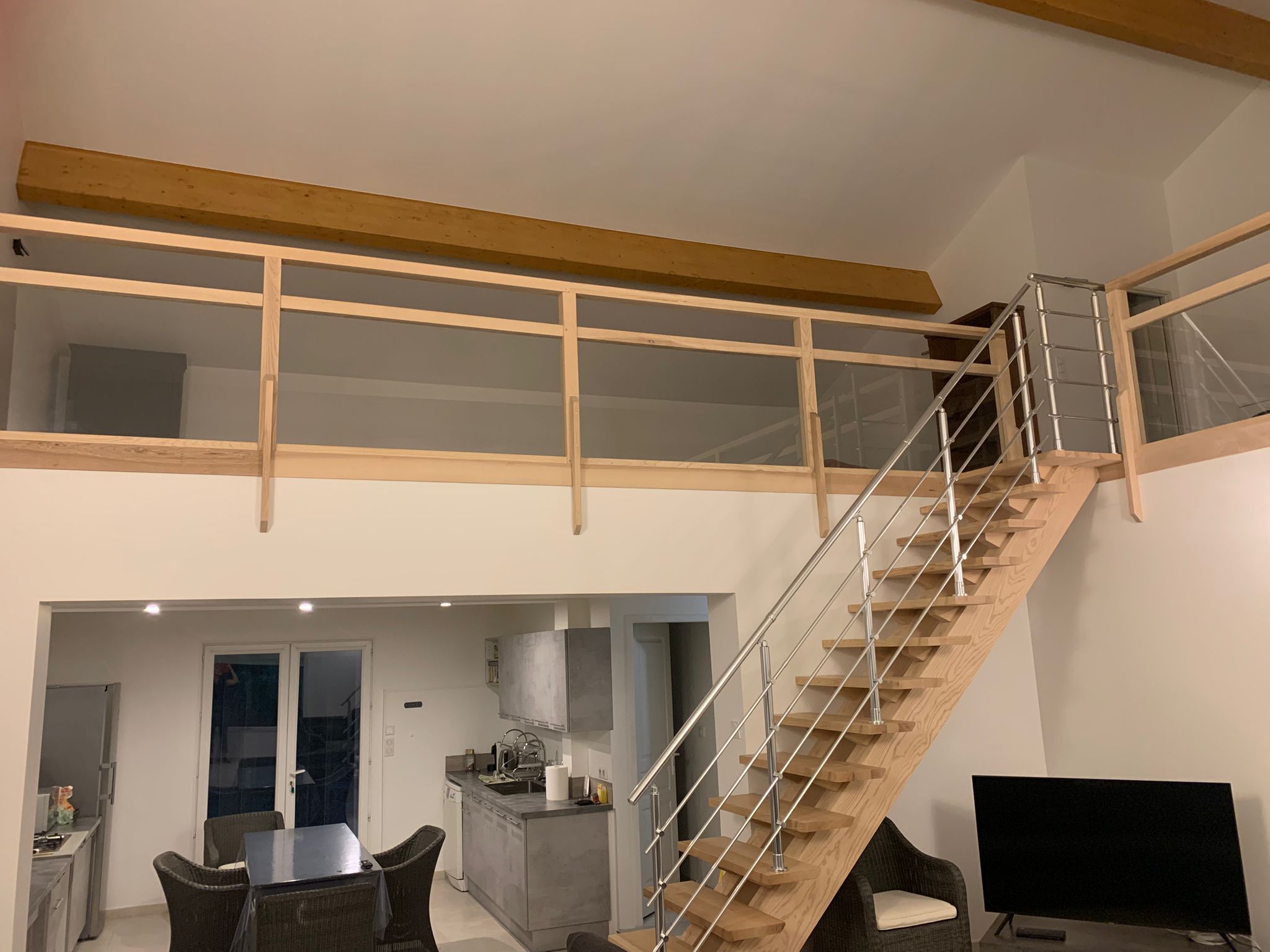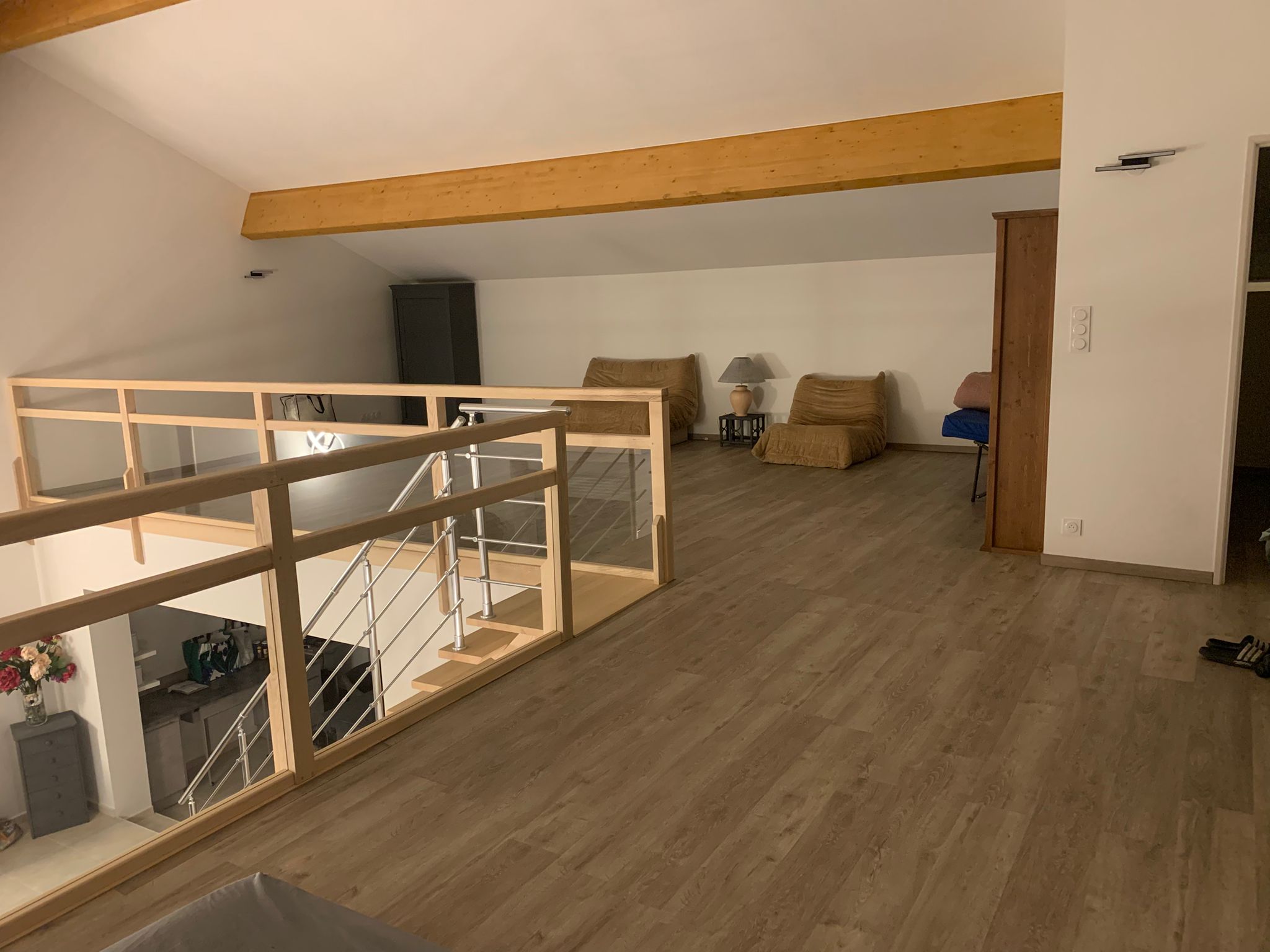 À l’étage, une mezzanine d’environ 50 m² et une pièce supplémentaire.