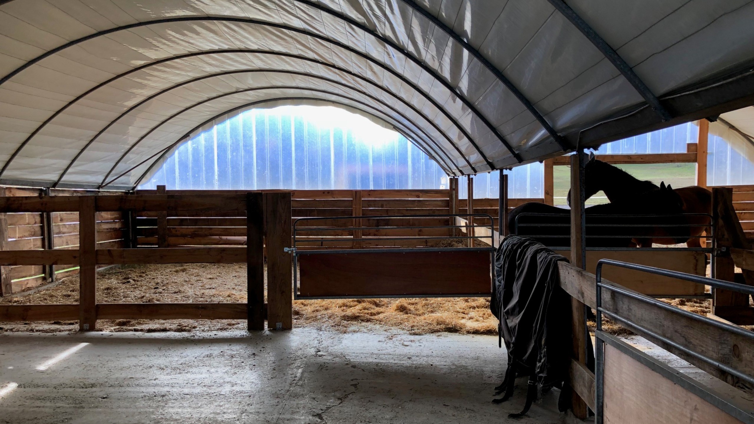 A 30 minutes de St Emilion, 45 de Bergerac, 1 h de Bordeaux, sur presque 10 hectares de prairies. Maison en pierre rénovée de 100 m² comprenant un séjour/salon, 2 chambres dont une suite parentale avec dressing et salle de bains, un bureau, un wc avec lave-mains, une cuisine. Dépendances attenantes de 150 m² coté salon, et d’une autre de 100 m² à l’arrière. Abri a voitures de 62 m² La partie équestre est composée de 6 paddocks clôturés et électrifiés avec des abris bois de 20 m² dans 4 prés. Source avec point d’eau sur 2 parcelles. Écurie de 300 m² avec 5 boxes, bureau et salle de soins. Paddocks électrifiés. Nombreux accès à des chemins de randonnée équestre et pédestre. Balades et tranquillité assurées.