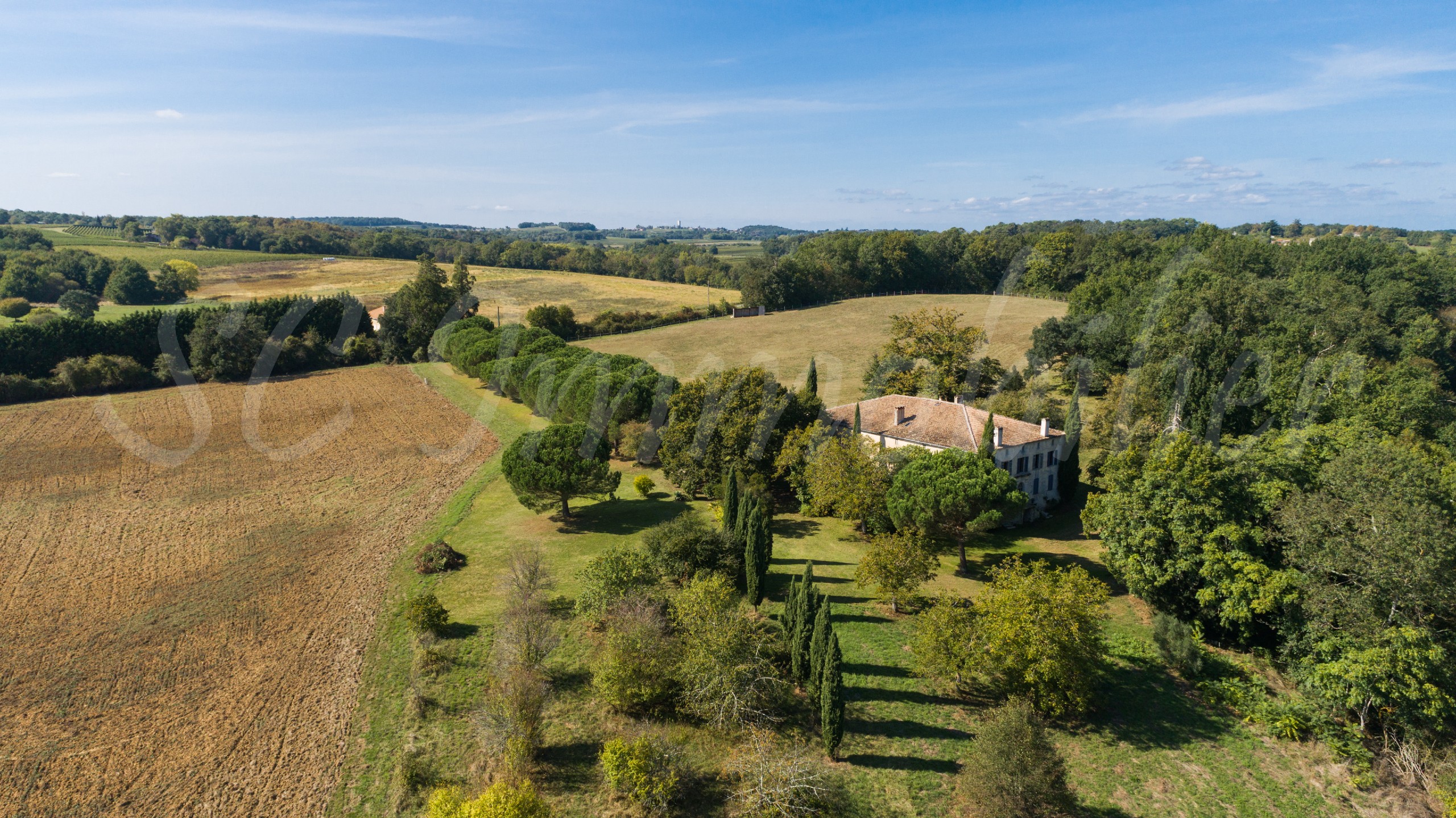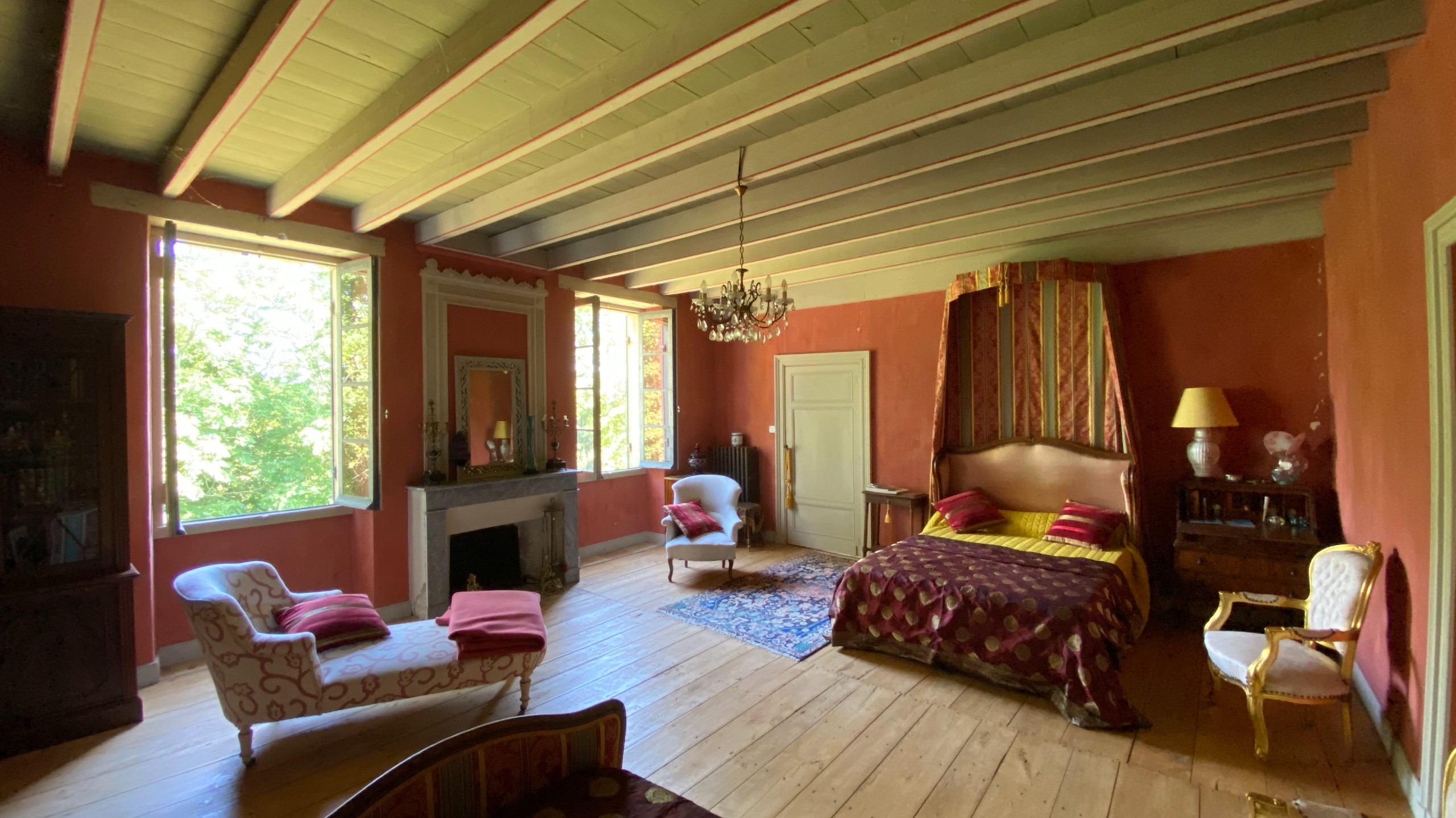 A 5 minutes de Sauveterre de Guyenne, sur plus de 10 hectares arboré et bordé par un ruisseau, propriété en pierre à vocation équestre de 356 m² habitables composée au rez-de-chaussée d’une entrée/dégagement en T desservant d’un coté la cuisine, la buanderie, le cellier, la grange de 180 m²; en face un salon, une chambre à rafraichir, un wc; au 1 er étage un palier vous amène à une chambre et son dressing, un bureau, 3 chambres et une salle de bains; au 2 ème étage : 155 m² de combles. Chaufferie. Ancienne maison de gardien sur 3 niveaux de 30 m² chacun, à rénover. Cave au sous-sol de 120 m² aménageables. Verger. Diverses dépendances.